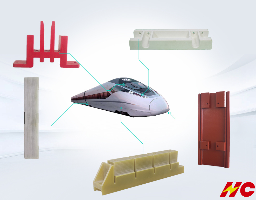 轨道交通运用绝缘材料的模块很多,各模块电机及牵引电机、各模块设备、内饰等模块!对于这种民用交通工具在安全性能上面有相当高的要求,需要防火报告,阻燃等级为V0级,耐温等级为F级以上,甚至需要C级耐温要求,除此之外材料本身需要一定的的机械强度,电气强度,常使用的材料为:HC-GPO3/HC-FR4/HC-FR5!